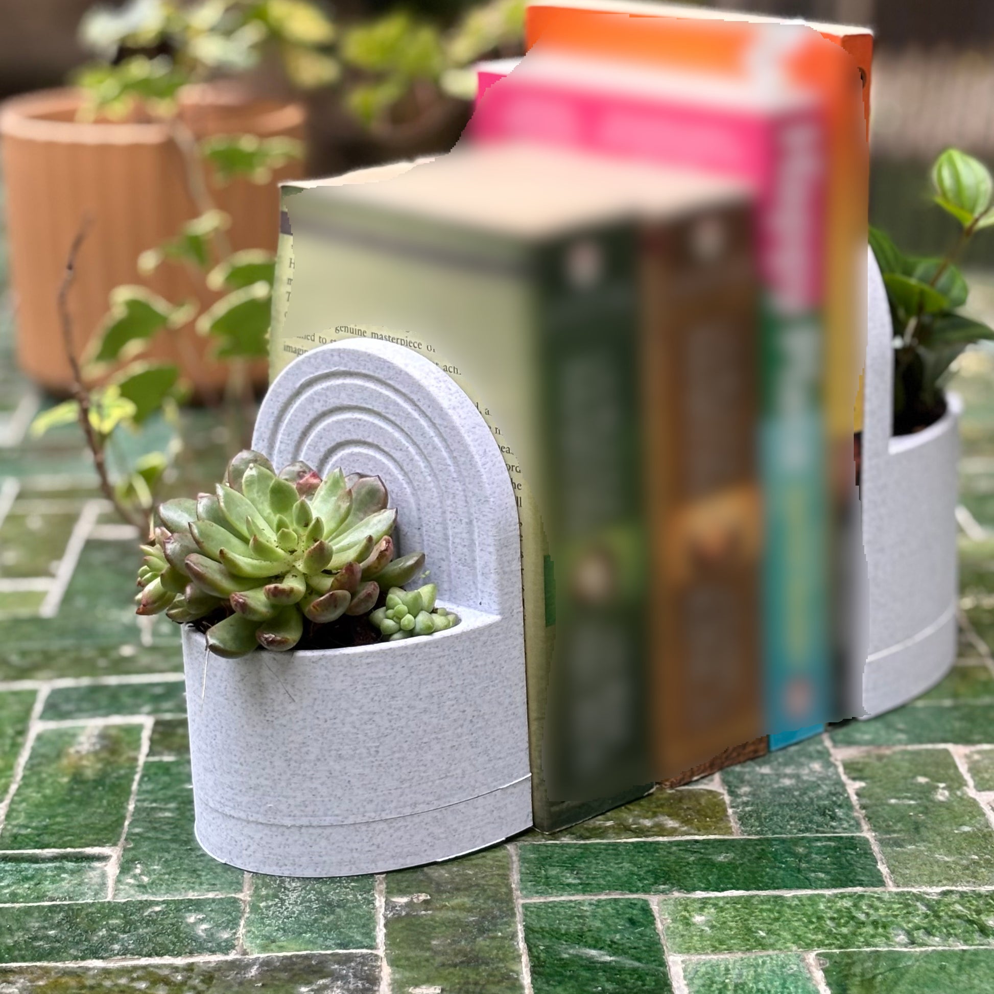 - ✅ Dual-Function Design: Combines a sturdy bookend with a built-in planter for succulents or small indoor plants.